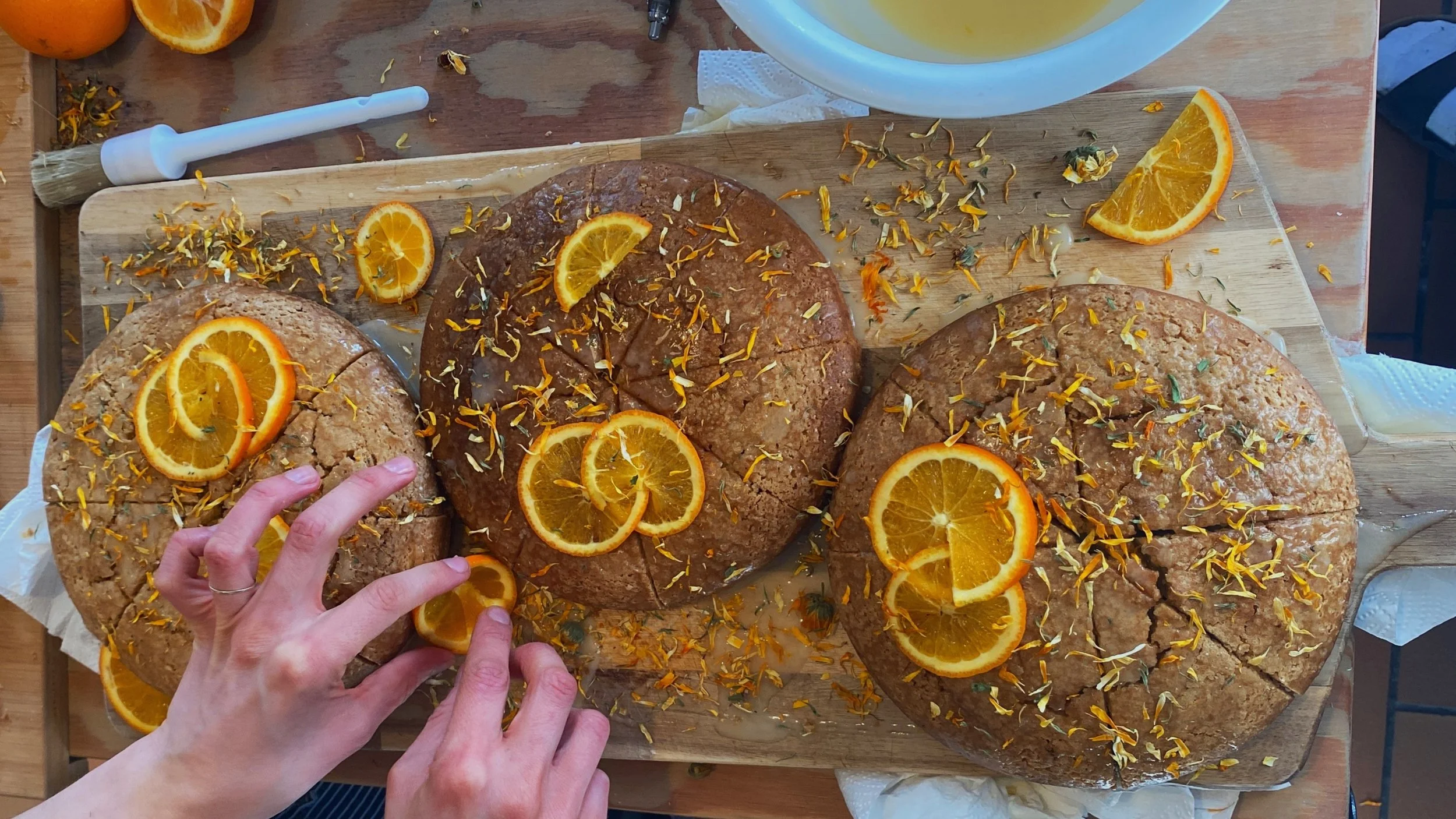 Mediterranean Orange Cake made with orange, olive oil and cardamon.